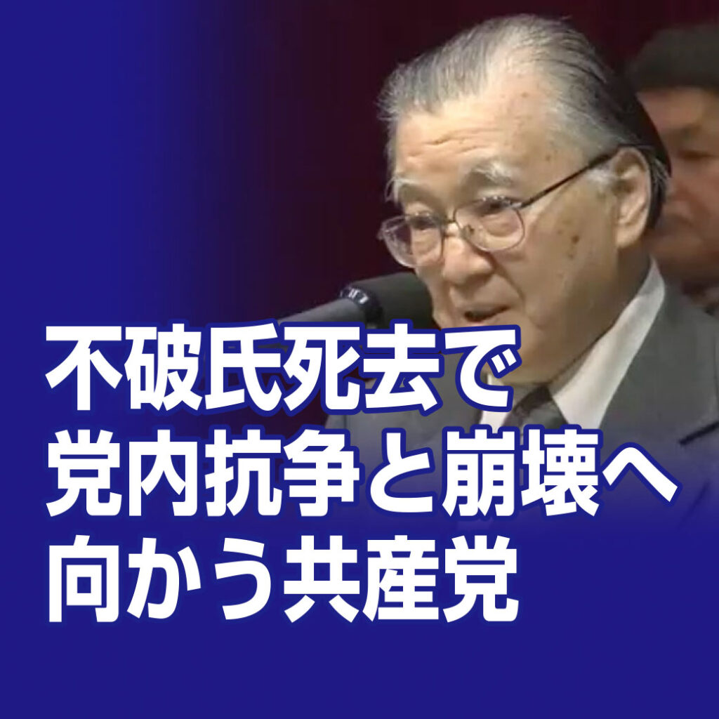 不破氏は、長らく共産党の理論的支柱であった。マルクスの著作の解説本などを無数に執筆したほか、近年は「重鎮」として、共産党内部の党幹部同士の人間関係の確執や不和などを理論的に説明しながら抑え込んできた。彼の死去で、党内権力争い、党内抗争が表面化し、共産党が崩壊・解散する可能性も現実味を帯びてきた。