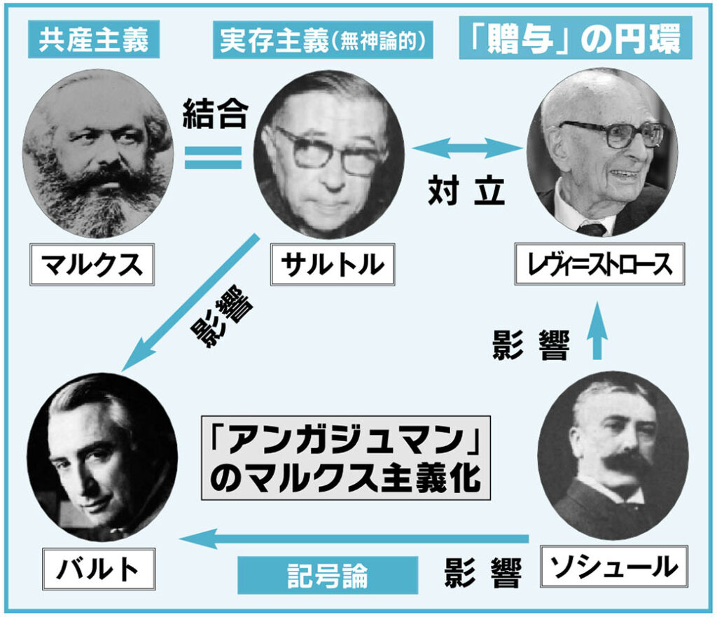 レヴィ=ストロースにとってサルトルのマルクス主義実存哲学こそ真っ向から対立した「天敵」です。しかしソシュール記号学を構造主義的立場で引き継いだロラン・バルトは、サルトルの「アンガージュマン」思想を文学領域におけるマルクス主義として展開しようとしたのです。